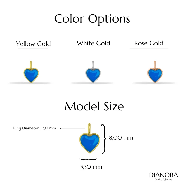 Product: 14k Gold Blue Enamel Heart Motif Minimal Charm