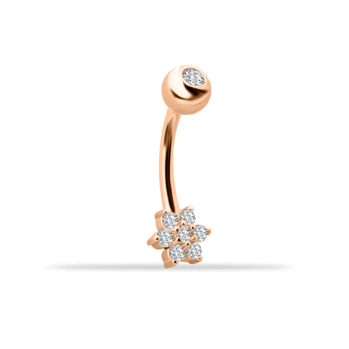 14k Gold Flower Motif Belly Piercing