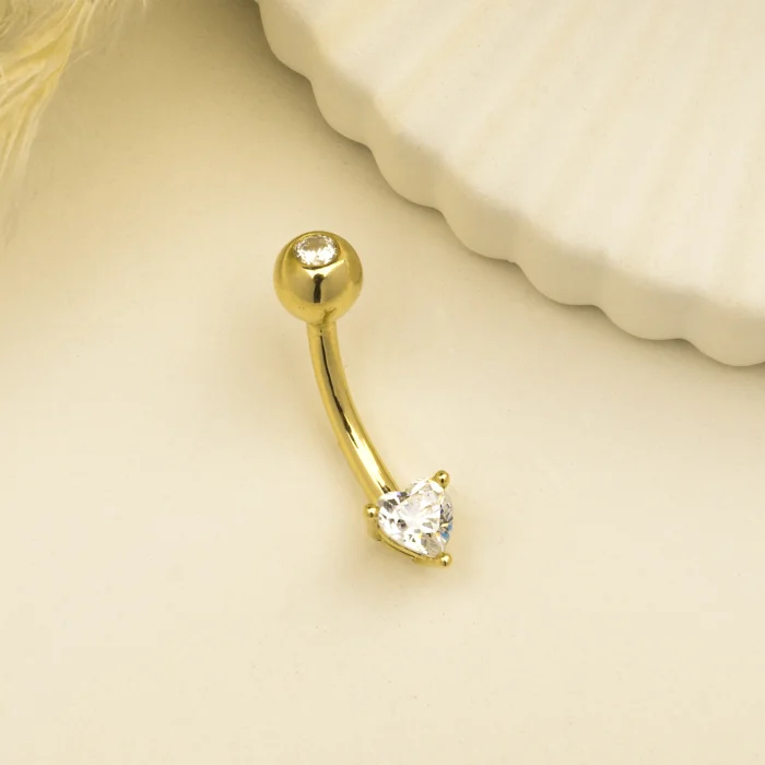 Product: 14k Gold Heart Stone Belly Piercing
