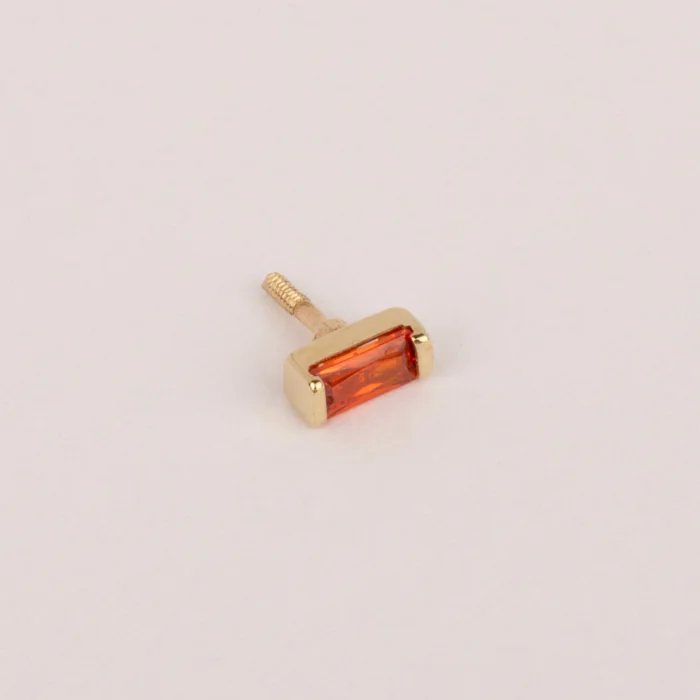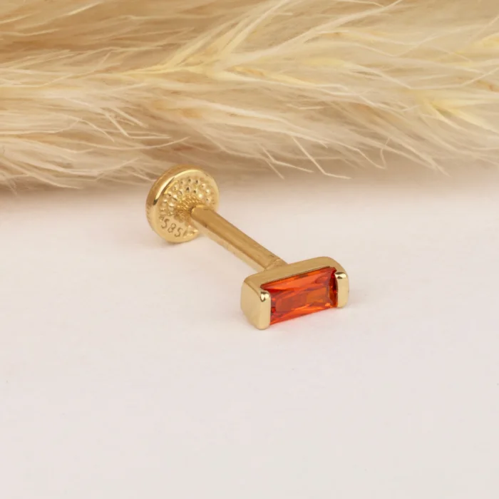 14k Gold Orange Baguette Stone Minimal Tragus Piercing
