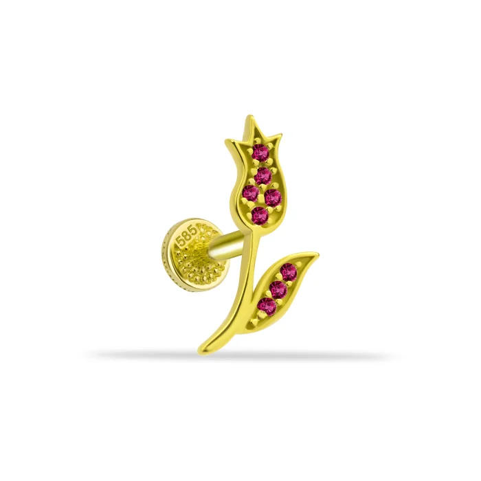 Product: 14k Gold Pink Stone Flower Minimal Tragus Piercing