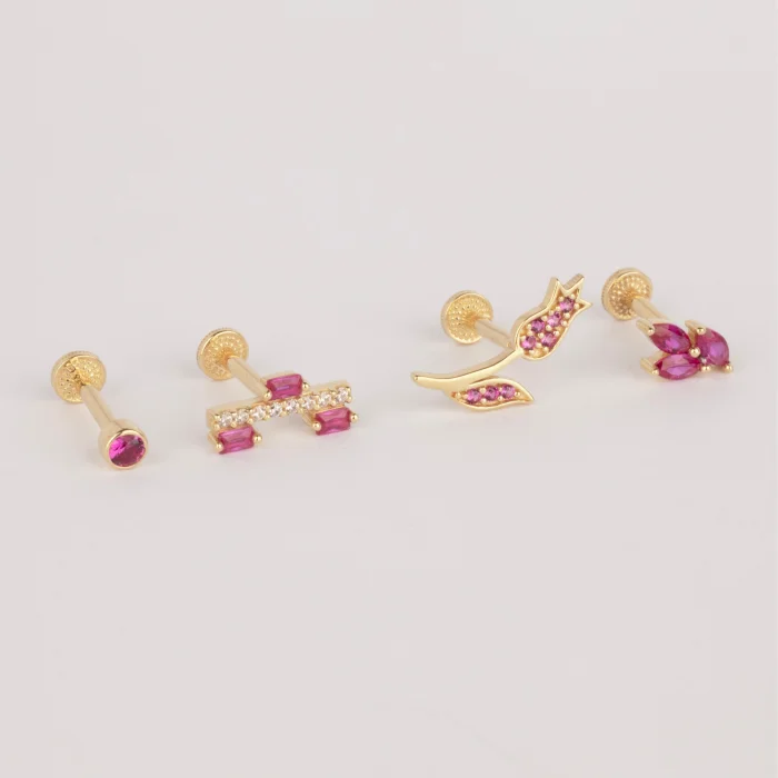 Product: 14k Gold Pink Stone Flower Minimal Tragus Piercing