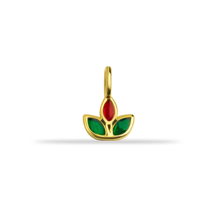 Product: 14k Gold Red And Green Enamel Lotus Motif Minimal Charm