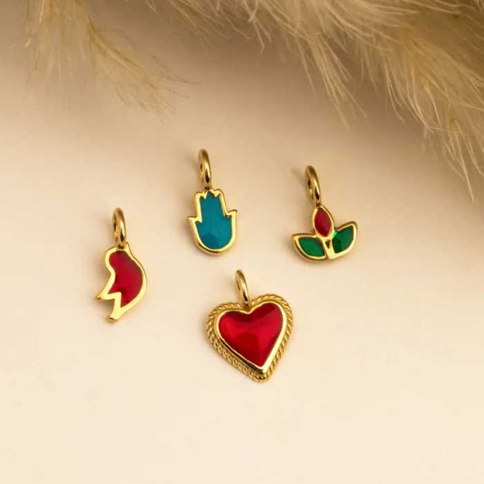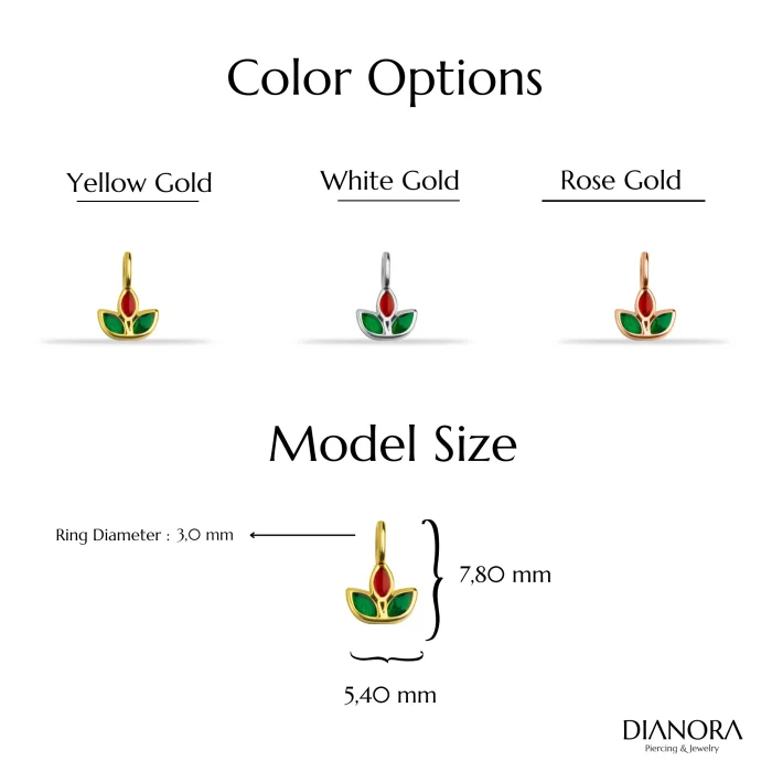 Product: 14k Gold Red And Green Enamel Lotus Motif Minimal Charm