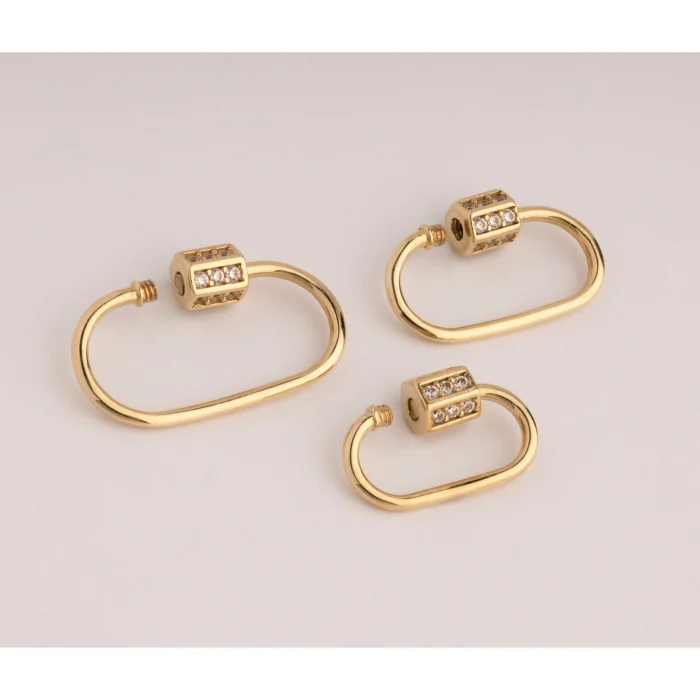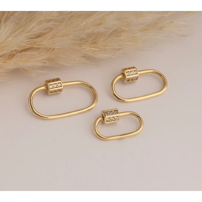 Product: 14k Gold Slim Charm Lock Carabiner With Stones