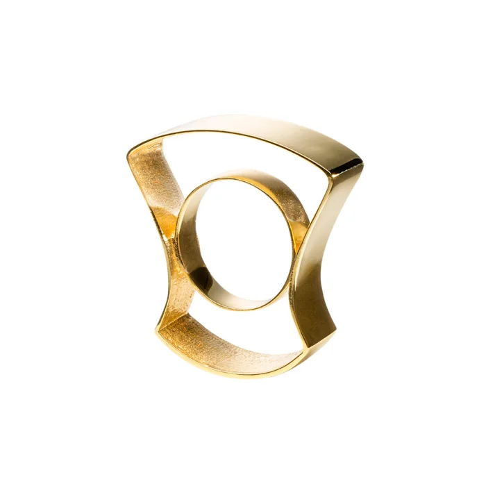 Designed by emphasizing the ergonomic structure, the Ergonomic ring is produced by  925 sterling silver with 14 carat gold.With 100% handmade production, the design offers different gold plating options, allowing buyers to create their own combinations.