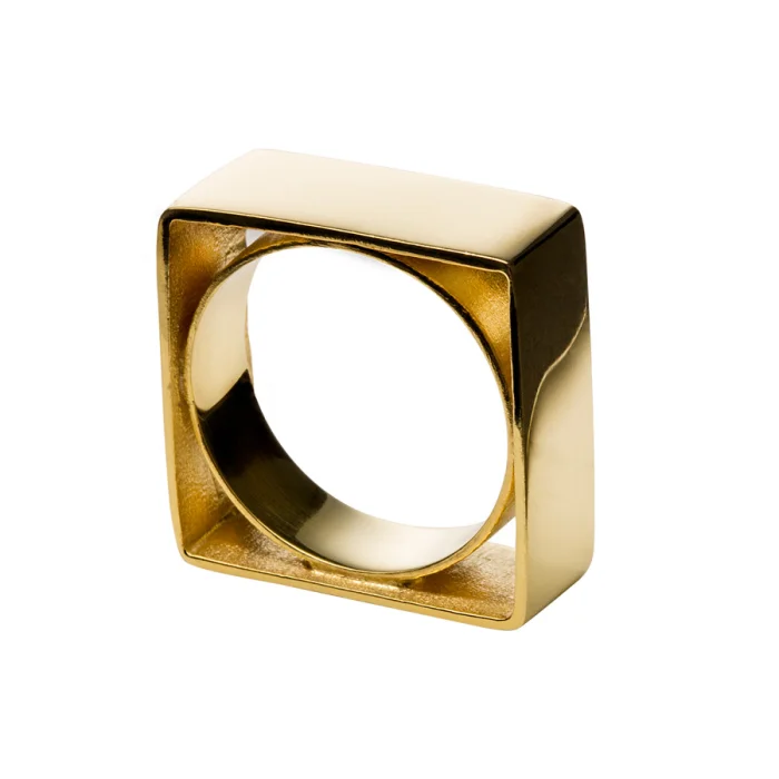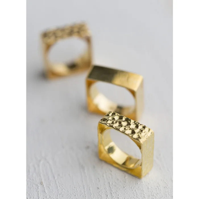 Designed by emphasizing the ergonomic structure, the Square Flat ring is produced by 925 sterling silver with 14 carat gold.With 100% handmade production, the design offers different gold plating options, allowing buyers to create their own combinations.
