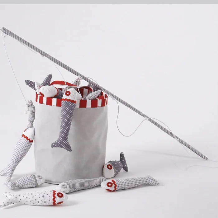 Our fishing game consists of 1 (one) bucket, 1 (one) fishing rod, 8 (eight) Minnak baby fish. The design and weight of the bucket are adjusted according to the carrying power of our little ones. Our fisherman game is produced in accordance with the conditions where our preschool children aged 2-5 can play safely.