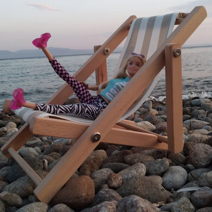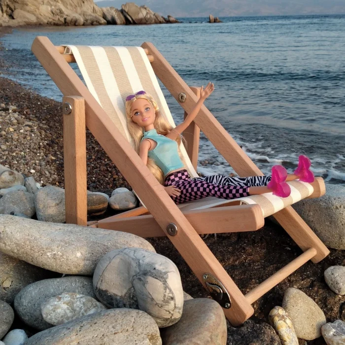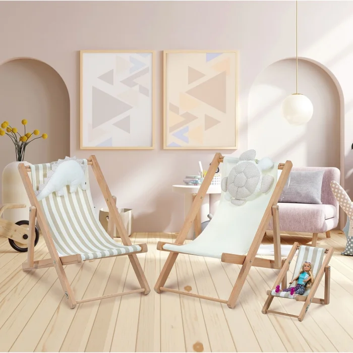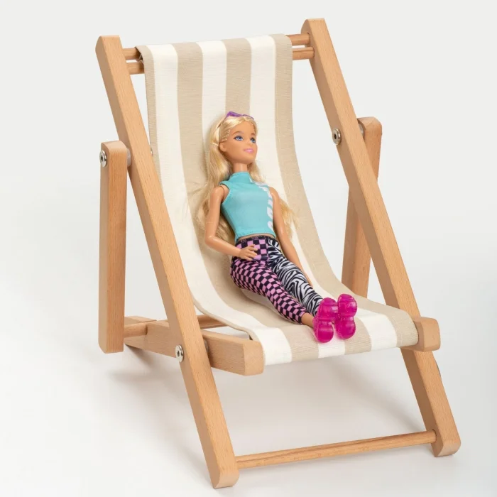 Educational Developer Solid Wood Modern Doll Seat. Game & Hobby Doll Seat. Fun Natural Children's Gift. Natural solid wood doll seat including one cushion. Doll lounge chair frame natural solid wood 20 * 30 * h: 27cm. Seat weight including cushion 523gr. Box weight 900gr. Seat cushion, indoor( indoor) upholstery fabric. The sale of the product includes one (1) pink-and-white striped cushion and one (1) wooden doll seat. The doll is used for décor purposes, the product is not included in our sale. Product: Designer Game Natural Wooden Doll Chair