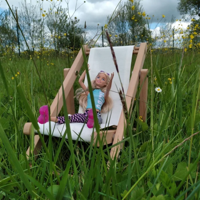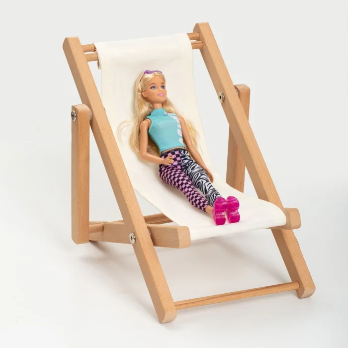 Educational Developer Solid Wood Modern Doll Seat. Game & Hobby Doll Seat. Fun Natural Children's Gift. Natural solid wood doll seat including one cushion. Doll lounge chair frame natural solid wood 20 * 30 * h: 27cm. Seat weight including cushion 523gr. Box weight 900gr. Seat cushion, indoor( indoor) upholstery fabric. The sale of the product includes one (1) pink-and-white striped cushion and one (1) wooden doll seat. The doll is used for décor purposes, the product is not included in our sale. Product: Designer Game Natural Wooden Doll Chair