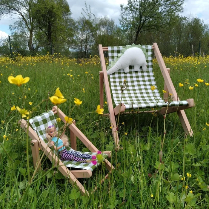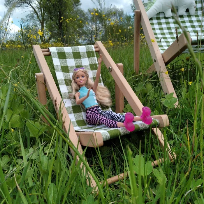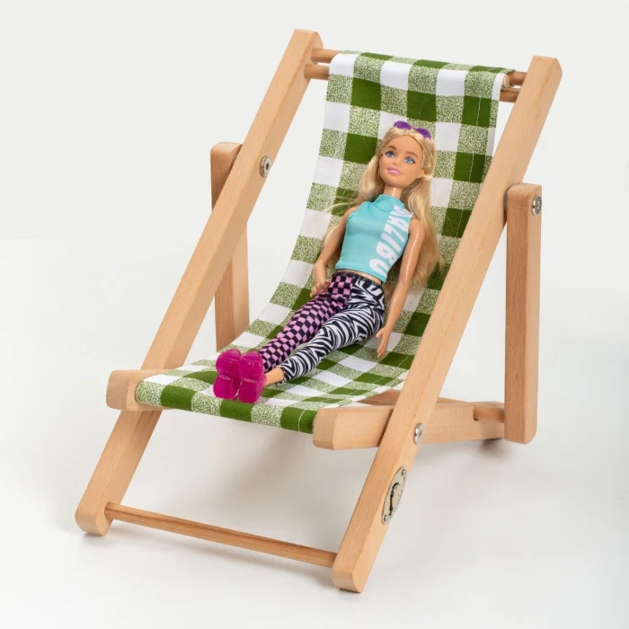 Educational Developer Solid Wood Modern Doll Seat. Game & Hobby Doll Seat. Fun Natural Children's Gift. Natural solid wood doll seat including one cushion. Doll lounge chair frame natural solid wood 20 * 30 * h: 27cm. Seat weight including cushion 523gr. Box weight 900gr. Seat cushion, indoor( indoor) upholstery fabric. The sale of the product includes one (1) pink-and-white striped cushion and one (1) wooden doll seat. The doll is used for décor purposes, the product is not included in our sale. Product: Designer Game Natural Wooden Doll Chair