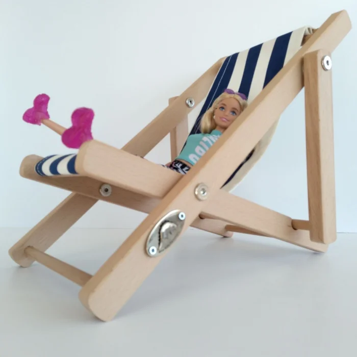 • Doll lounge chair frame natural solid wood 20 * 30 * h: 27cm. Seat weight including cushion 523gr. Box weight 900gr.