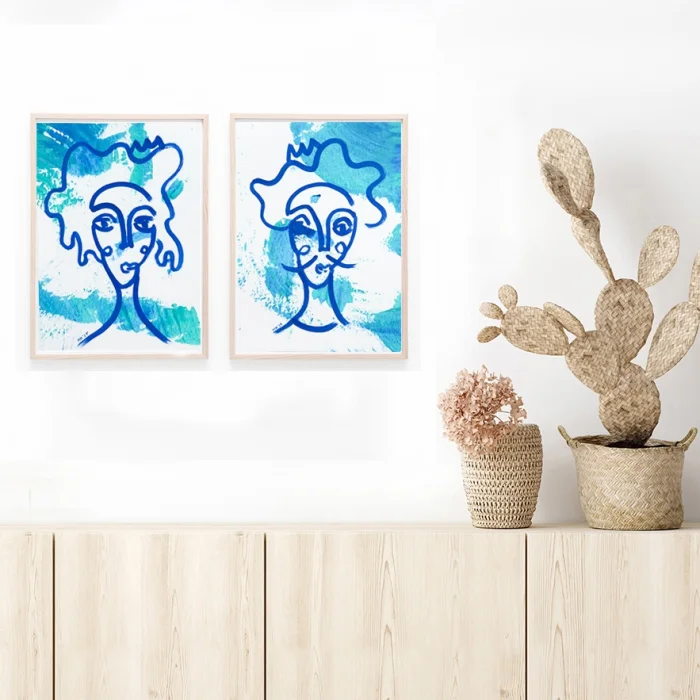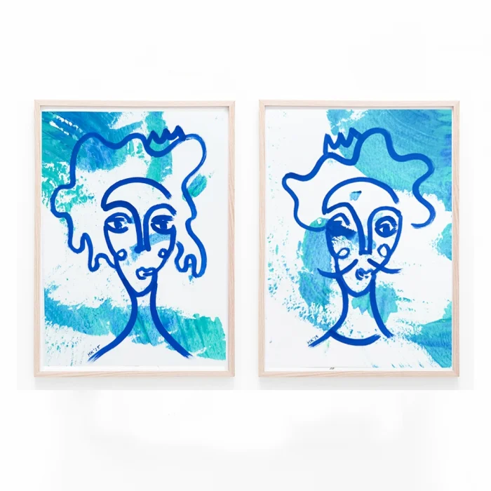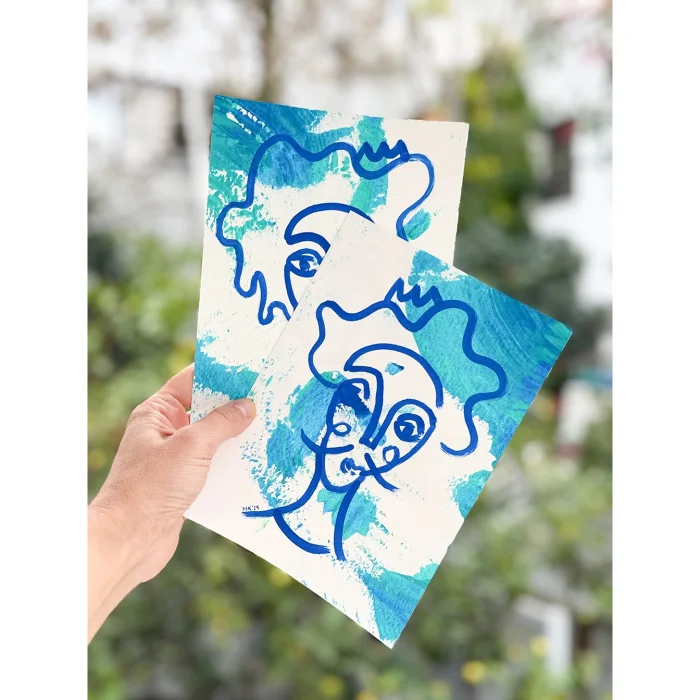 2 pieces, original, signed, unframed paintings. Since this painting is hand drawn, there is no exact example.