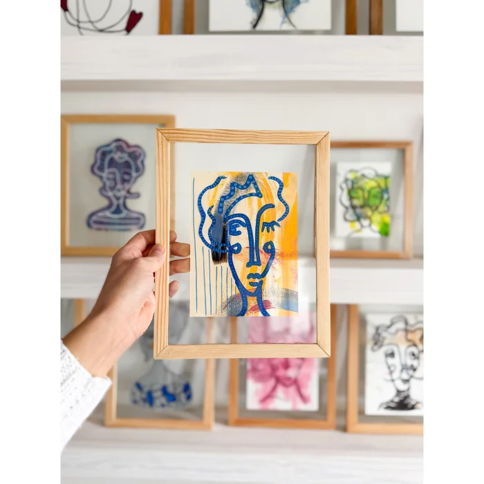 Original, signed, hand made wooden framed image. Since this picture is a hand drawing, there is no exact example.