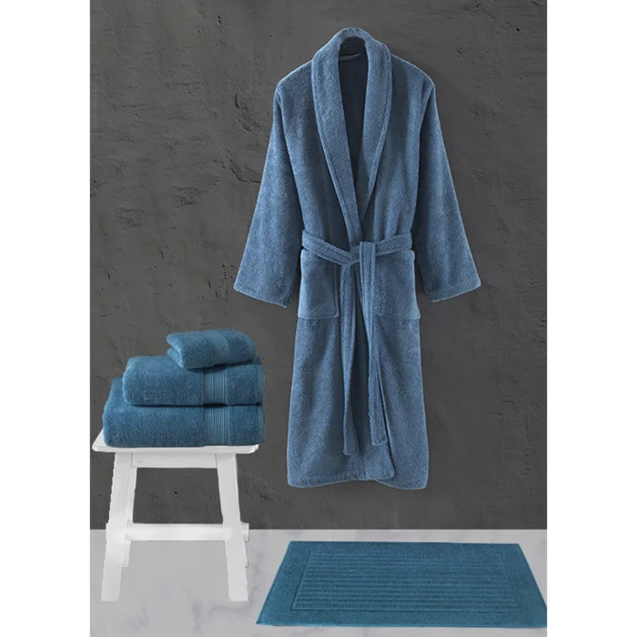 Sicilia Blue 5-Piece Towel Bathrobe Set