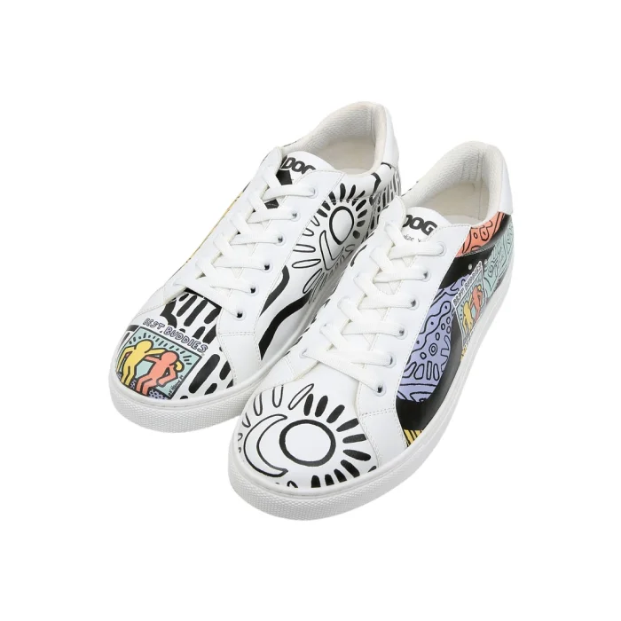 Product: Best Buddies X Dogo Men Vegan Leather White Sneakers - The World Is You Design