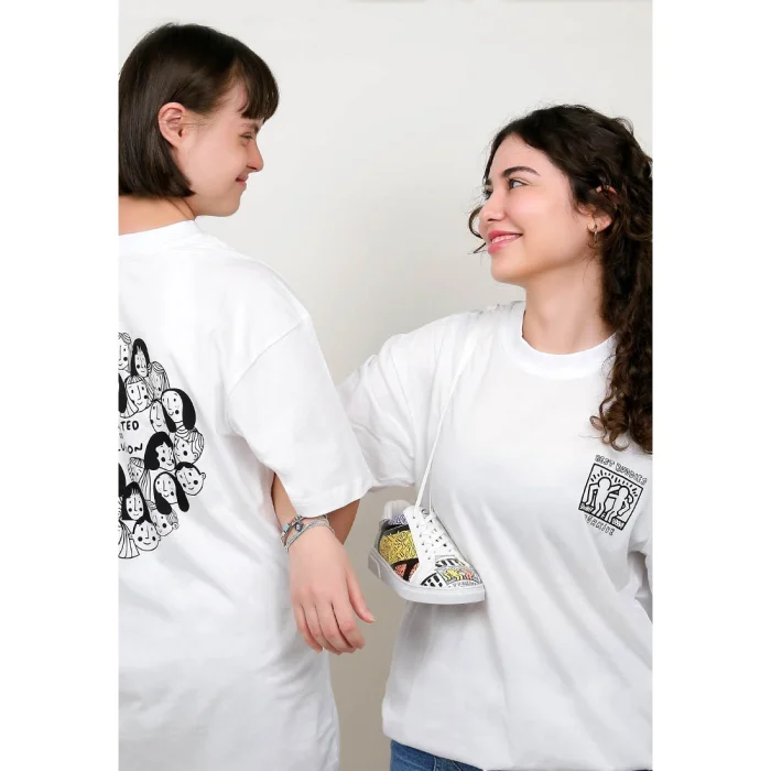 Best Buddies X Dogo Women Vegan Leather White Sneakers - The World Is You Design