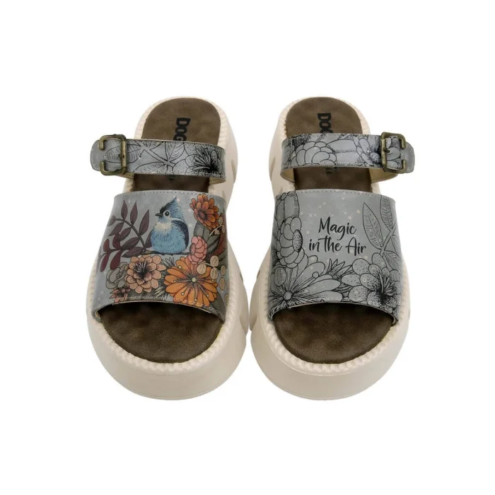 Kadın Vegan Deri Kalın Taban Terlik - Magic In The Air Tasarım