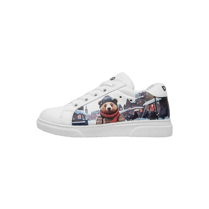Product: Unisex Kids Vegan Leather White Sneakers - Mr Bear Design