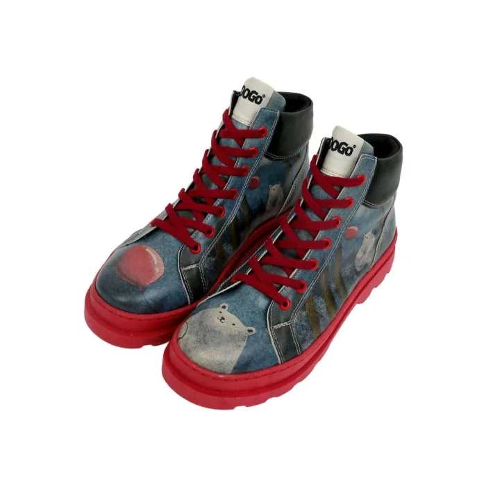 Product: Women Vegan Leather Ankle Boots - Bear With A Balloon Design