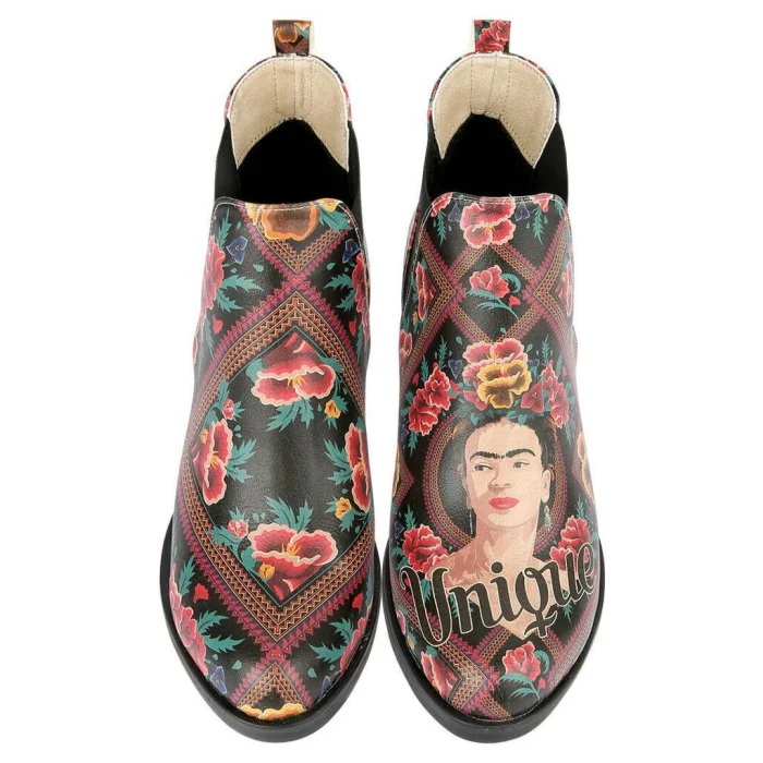 Product: Women Vegan Leather Ankle Boots - Beauty In The Broken Frida Kahlo Design
