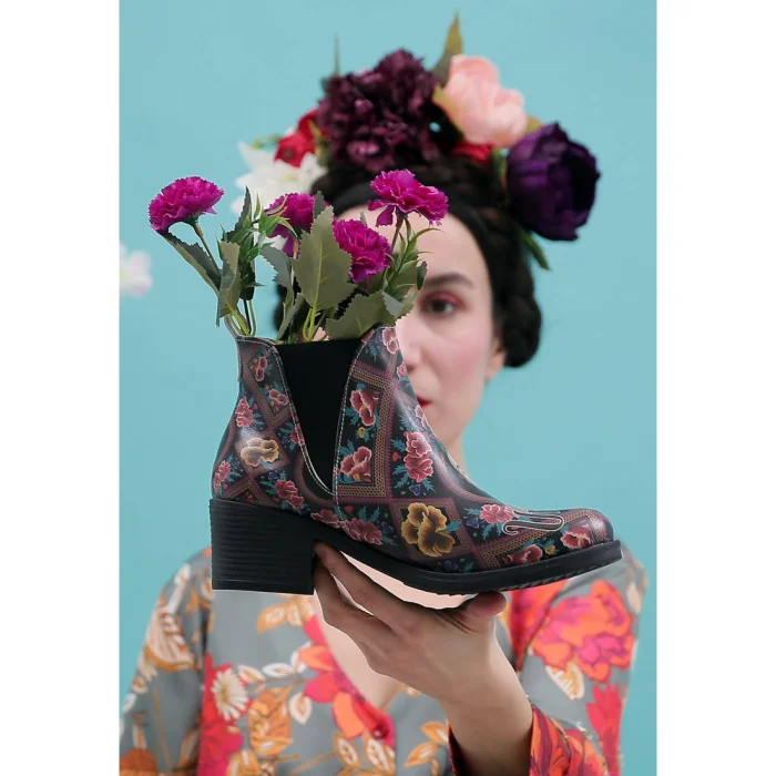 Product: Women Vegan Leather Ankle Boots - Beauty In The Broken Frida Kahlo Design