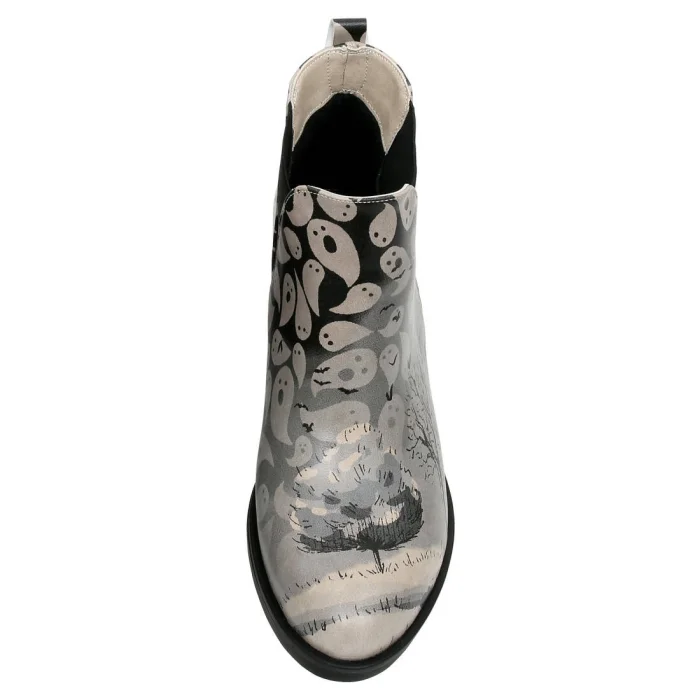 Product: Women Vegan Leather Ankle Boots - Spooky Town Design