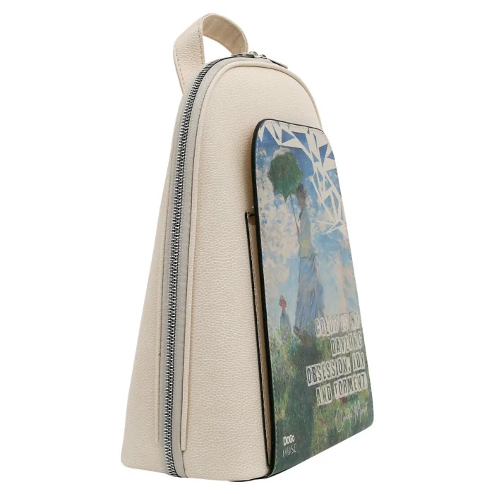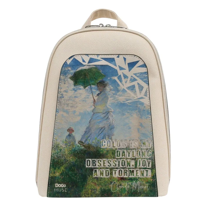 Product: Women Vegan Leather Backpack - Claude Monet Woman With A Parasol Muse Design