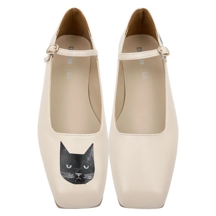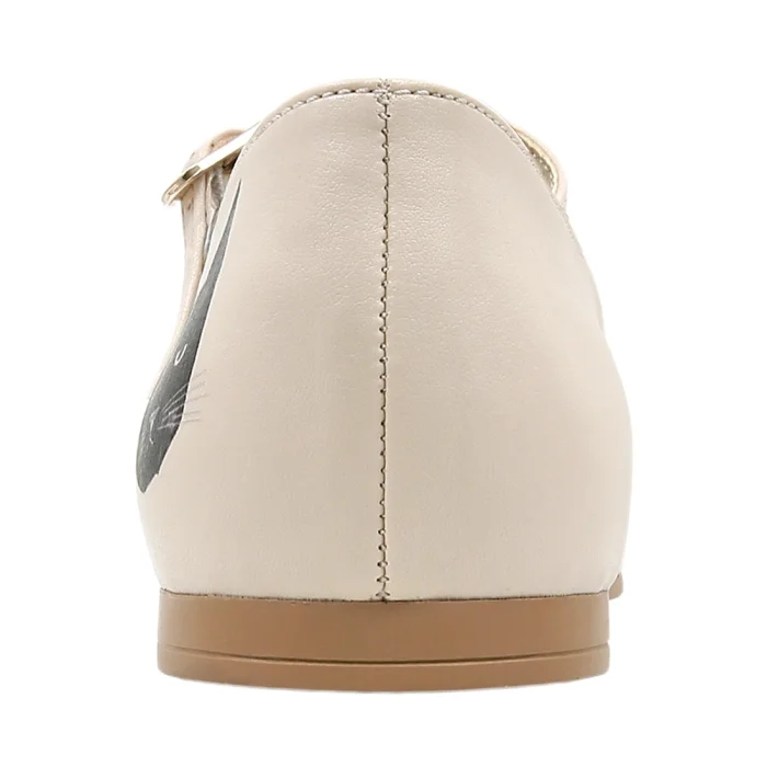Women Vegan Leather Beige Ballerinas - Whiskers And Purrs Design