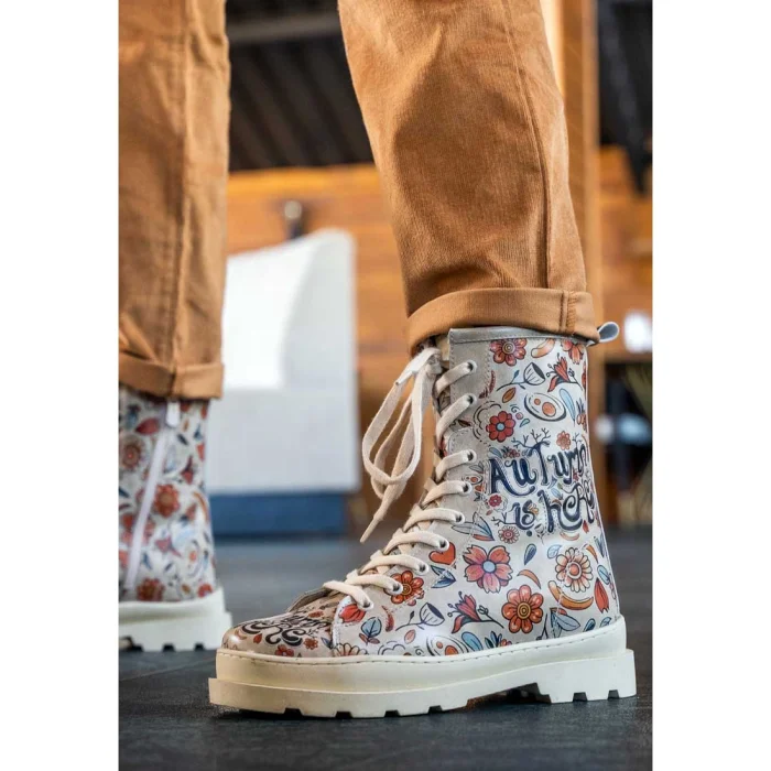 Product: Women Vegan Leather Beige Zipper Long Boots - Autumn Is Back Design