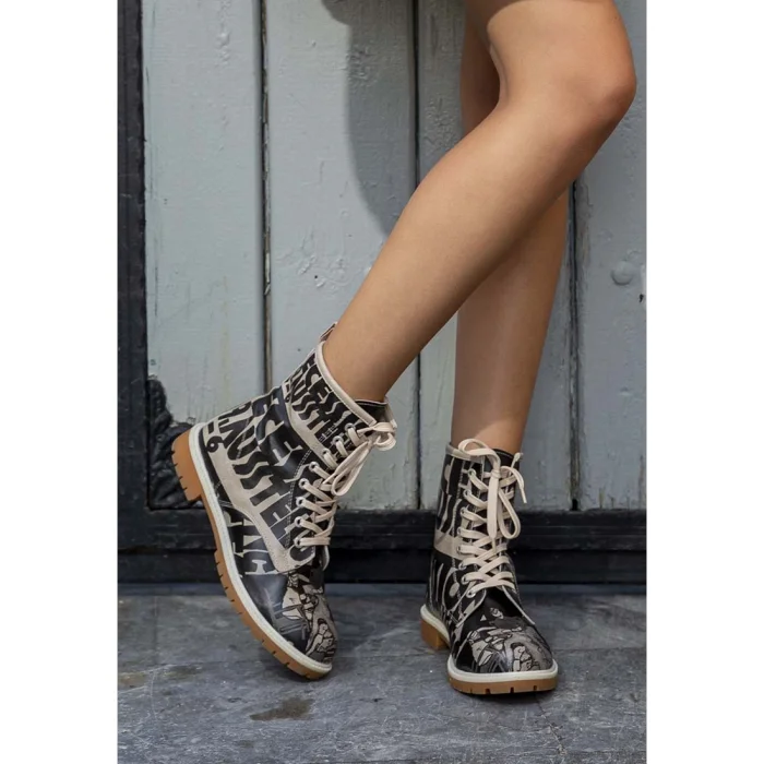 Women Vegan Leather Black Long Boots - Supper Blackwhite Design