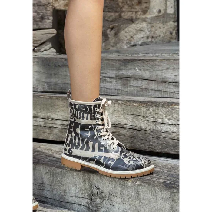 Women Vegan Leather Black Long Boots - Supper Blackwhite Design
