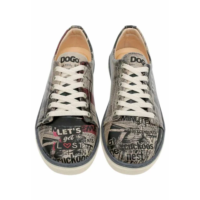Product: Women Vegan Leather Black Sneakers - Let's Get Lost Design