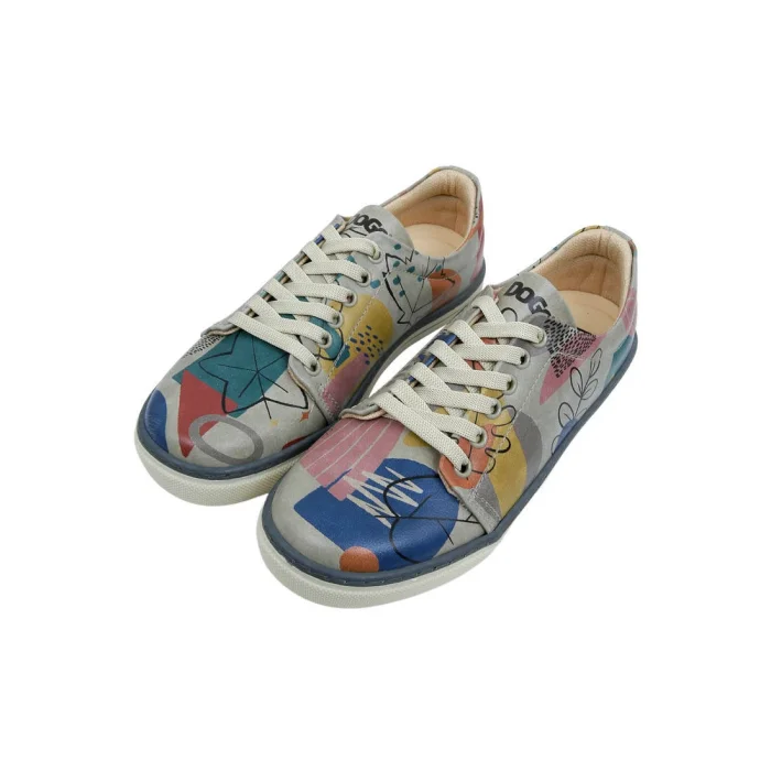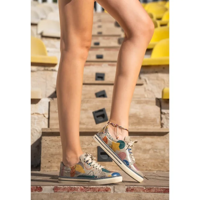 Product: Women Vegan Leather Blue Sneakers - Abstract Leaves Design