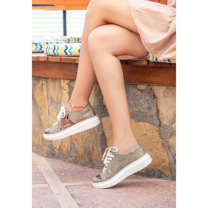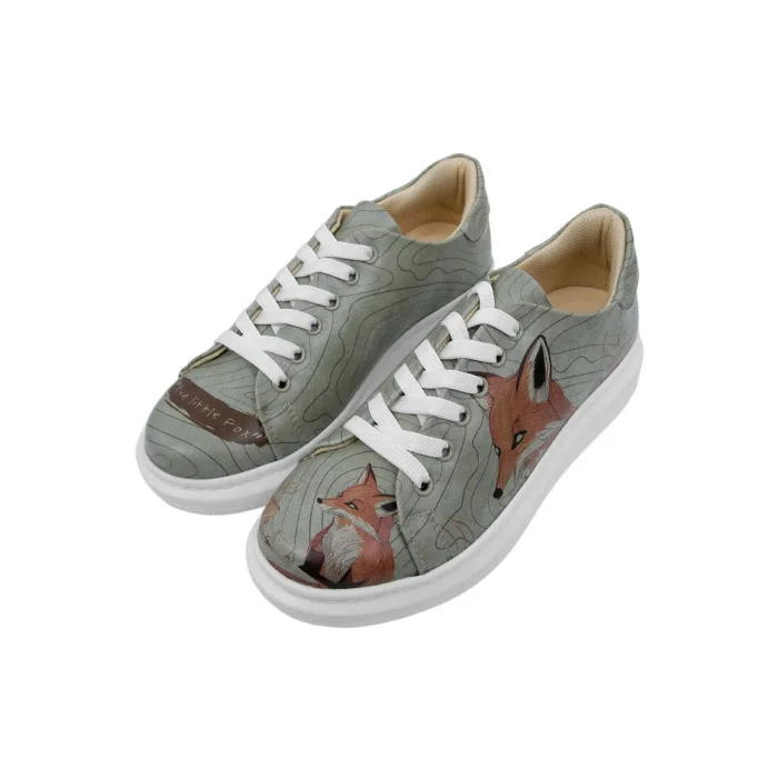 Product: Women Vegan Leather Blue Sneakers - Run Little Fox Design