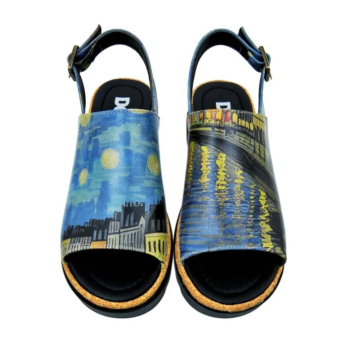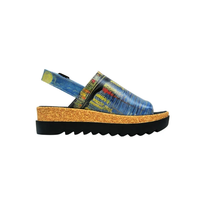 Product: Women Vegan Leather Blue Wedge Sandals - Sea Sparkles Design