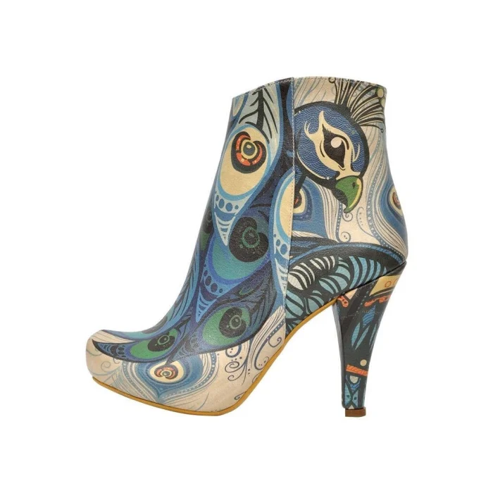 Product: Women Vegan Leather Bootie - Peafowl Design