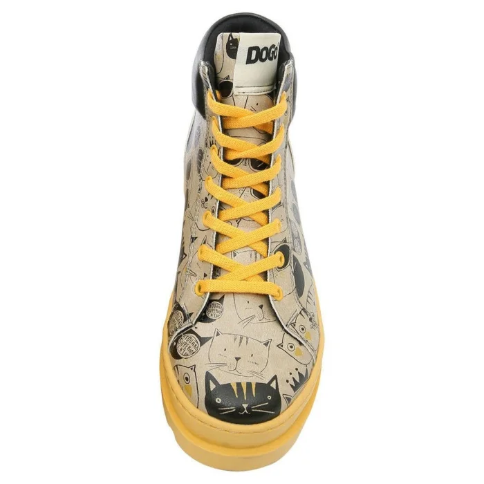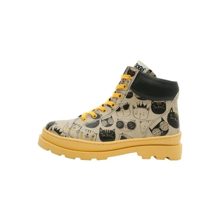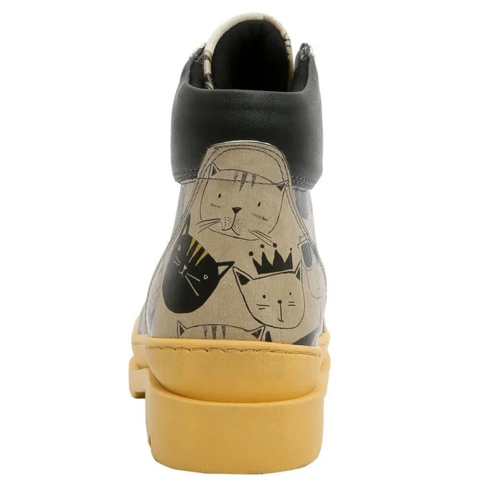 Product: Women Vegan Leather Boots - Monochrome Cats Design
