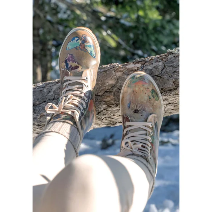 Product: Women Vegan Leather Brown Long Boots - Still Life Butterflies Design