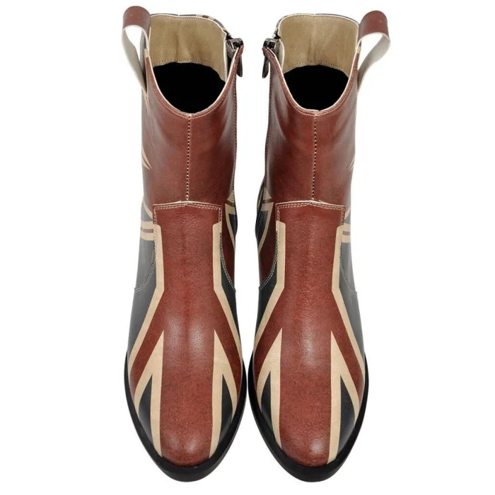 Product: Women Vegan Leather Cowboy Boots - British Flag Design
