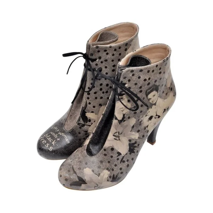Product: Women Vegan Leather High Heel Boots - Black Dress Design