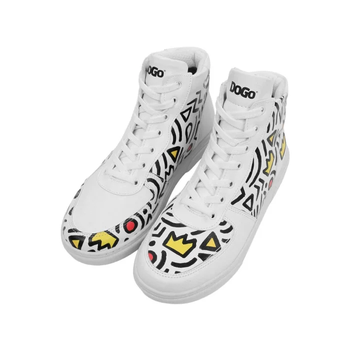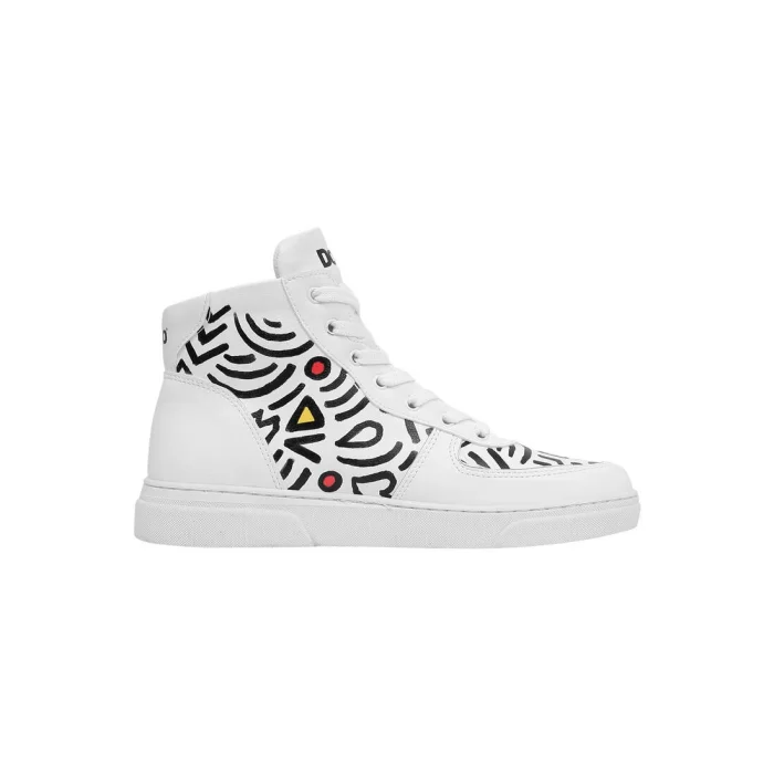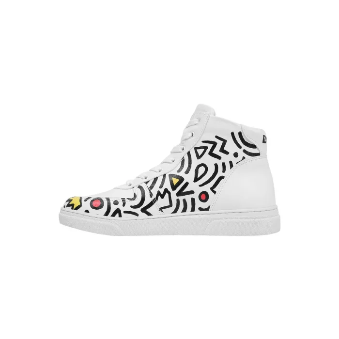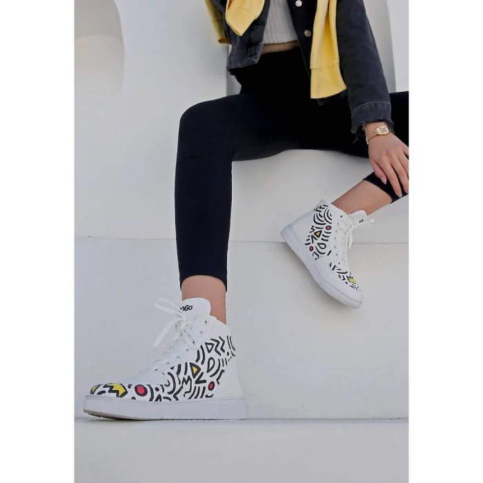 Product: Women Vegan Leather High Top Sneakers - Abstract Outline Design