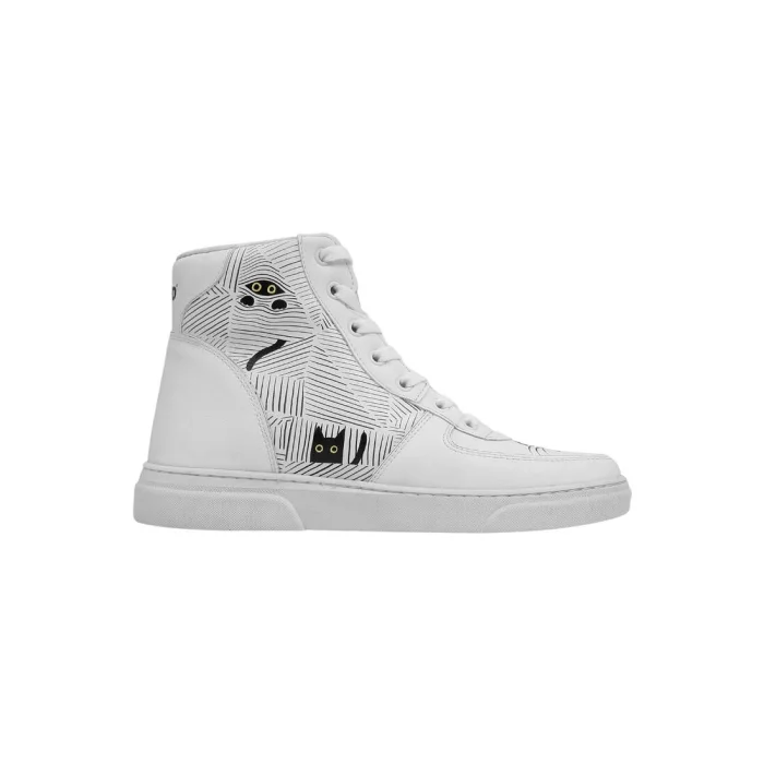 Product: Women Vegan Leather High Top Sneakers - Black Cats Only Design