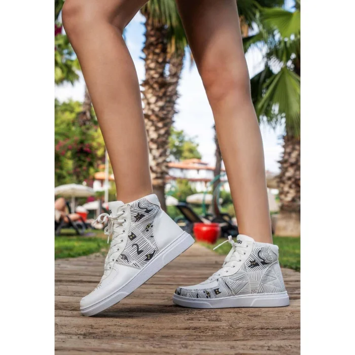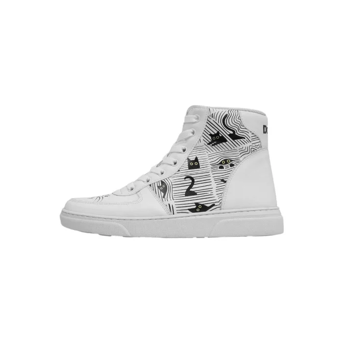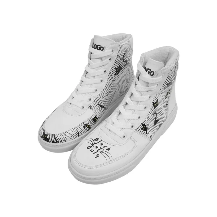 Product: Women Vegan Leather High Top Sneakers - Black Cats Only Design
