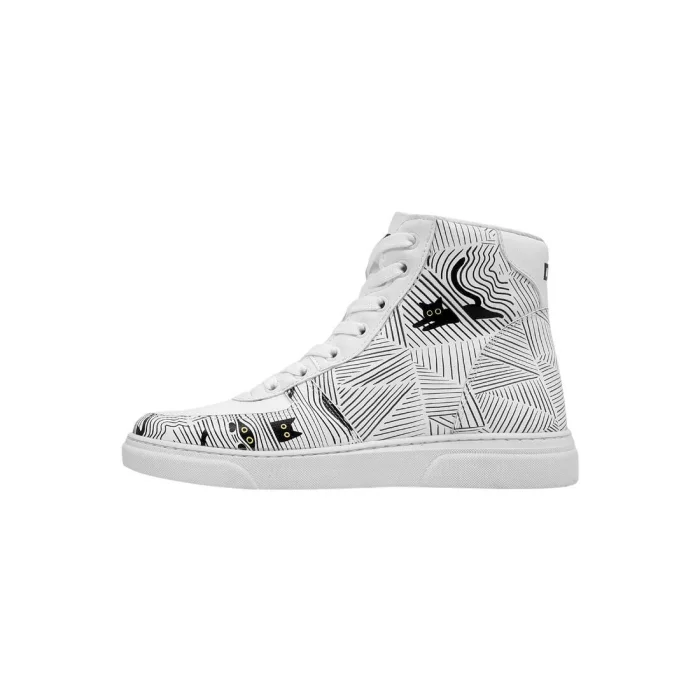 Product: Women Vegan Leather High Top Sneakers - Black Cats Only Design