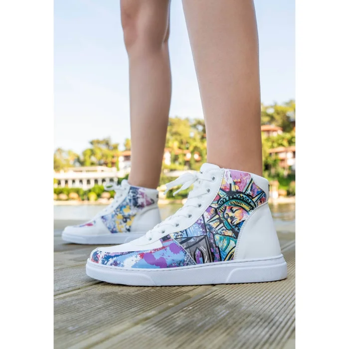 Product: Women Vegan Leather High Top Sneakers - New York State Of Mind Design