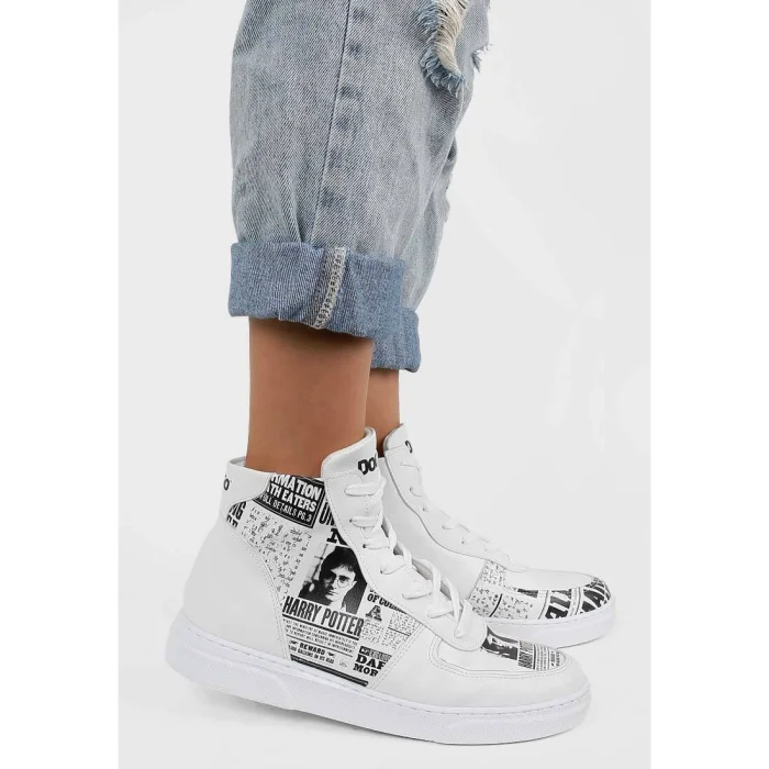Product: Women Vegan Leather High Top Sneakers - Warner Bros Daily Prophet Harry Potter Design