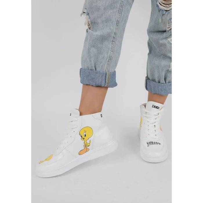 Product: Women Vegan Leather High Top Sneakers - Warner Bros Tweety Classic Design