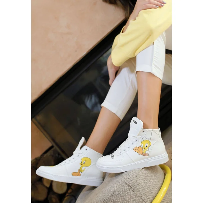 Product: Women Vegan Leather High Top Sneakers - Warner Bros Tweety Classic Design