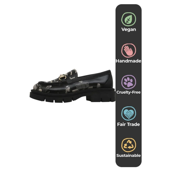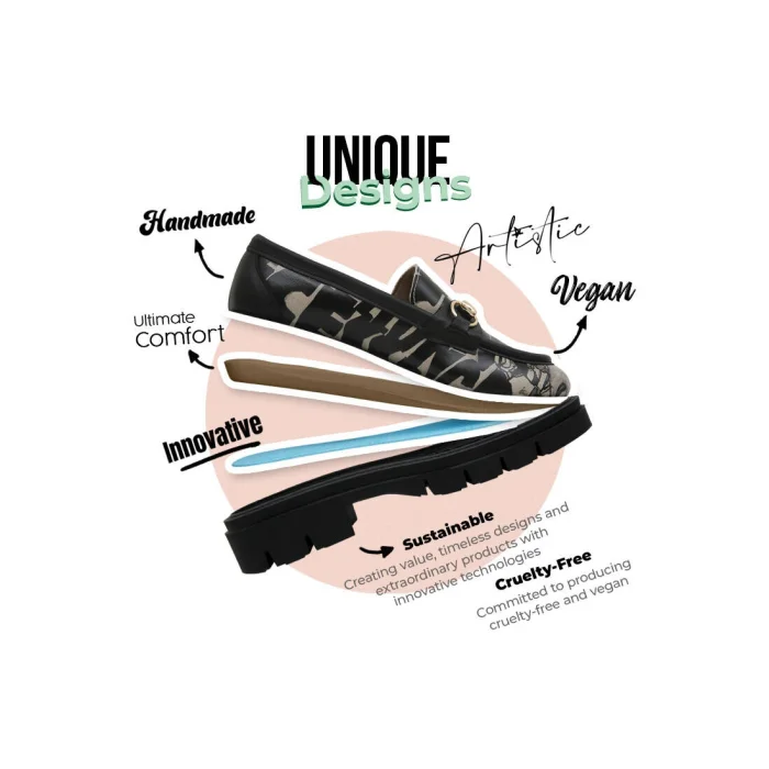 Product: Women Vegan Leather Loafers - Supper Blackwhite Design
